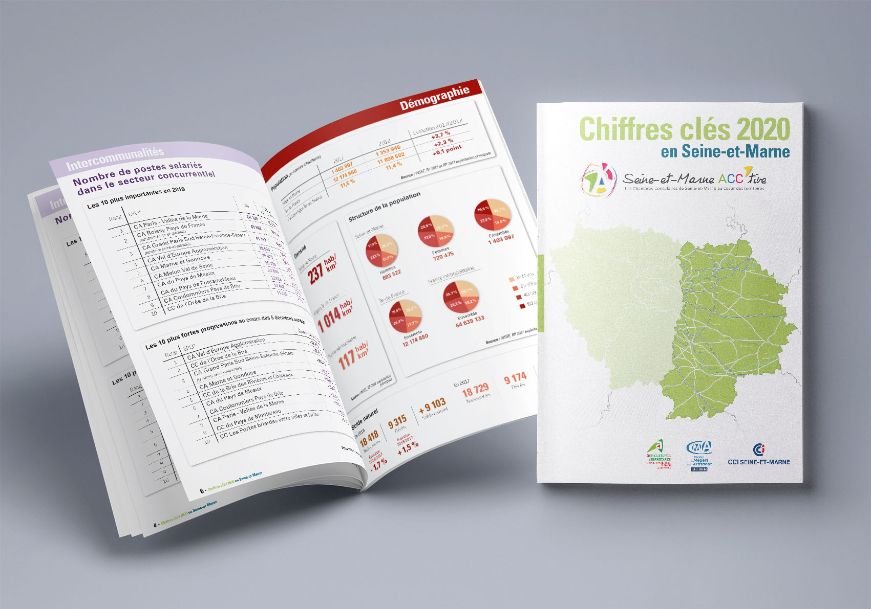 Mise à jour, à partir d’un fichier fourni par le client, de la brochure « Chiffres clé 2020 » de la CCI de Seine-et-Marne • A4 – 20p